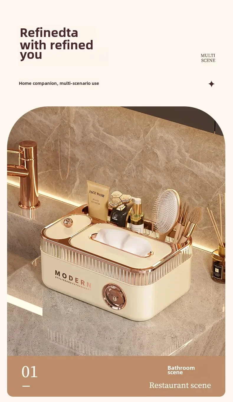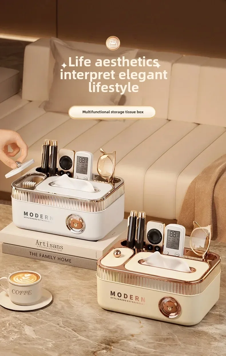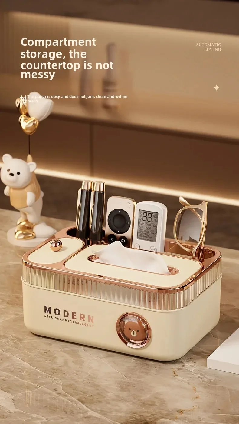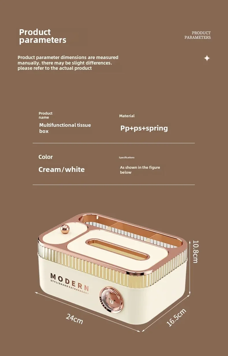 Luxury Cream Paper Towel Box Multi-Function Creative Home Living Room Tabletop Remote Controller Storage Drawer Box For Extracta
