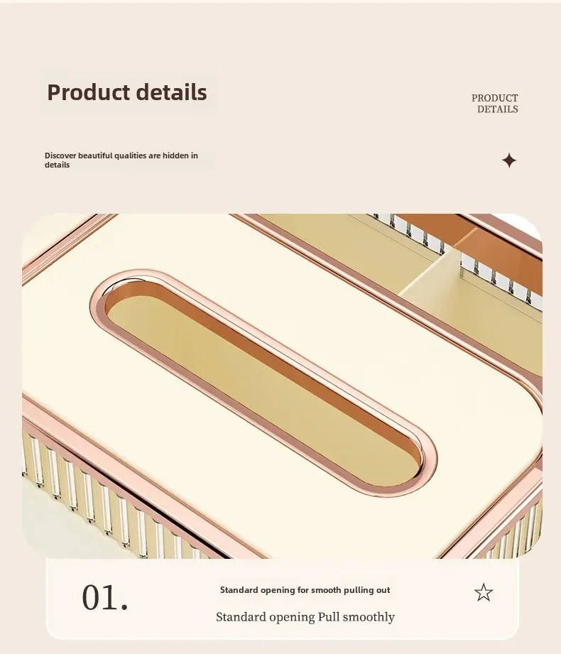 • Luxury Style Design : This tissue box features a luxurious style design, adding a touch of elegance to any living room or desktop.
